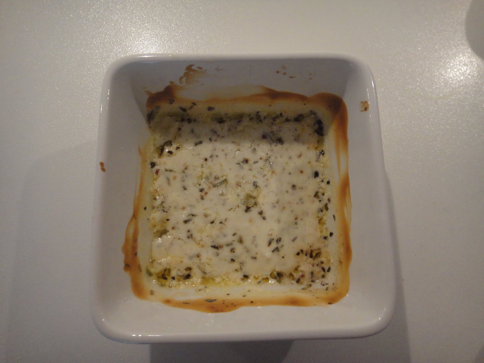 Sett ovnen på 230 grader. Samle rømme, smør, finrevet hvitløk, urter, salt og pepper i en individuell ildfast skål. Og ikke ha like stort hastverk som meg, smelt smøret først!